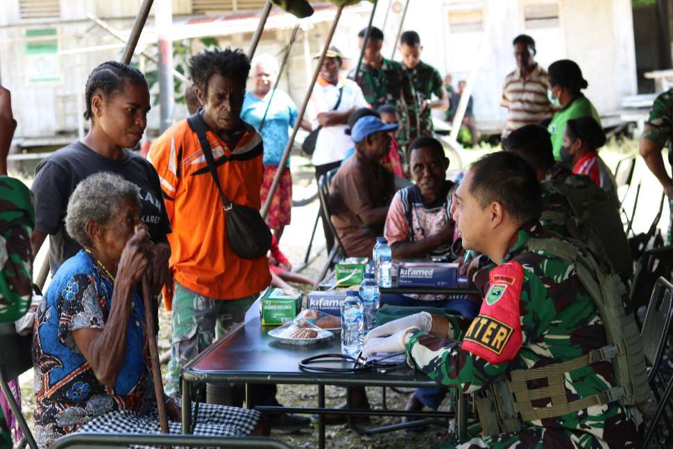 Dansatgas Yonif 762/VYS Hadiri Giat Pengobatan Massal Gratis Satgas Pos Kokas