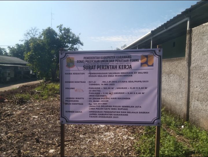 Kegiatan pembangunan saluran drainase, di Dsn. Krajan, RT. 002/002, Ds. Wancimekar, Kec. Kotabaru, Kab. Karawang, Jabar, menuai tanya.